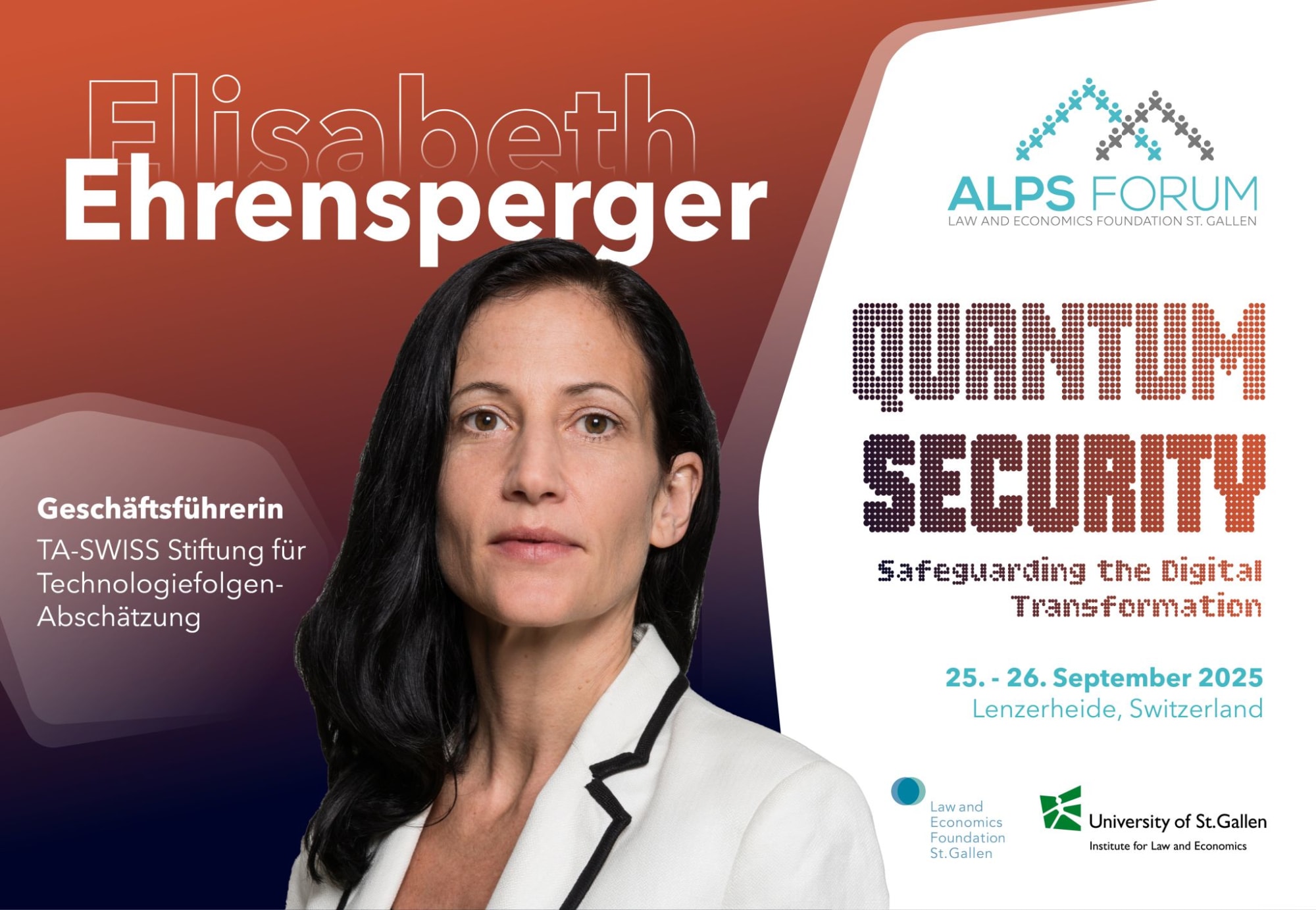"La Suisse au cœur de la sécurité quantique – opportunités et défis": Lors de la table‑ronde du Alps Forum 2025, notre directrice Elisabeth Ehrensperger a expliqué en quoi la Suisse fait toute la différence en tant que lieu d’implantation pour les technologies quantiques.