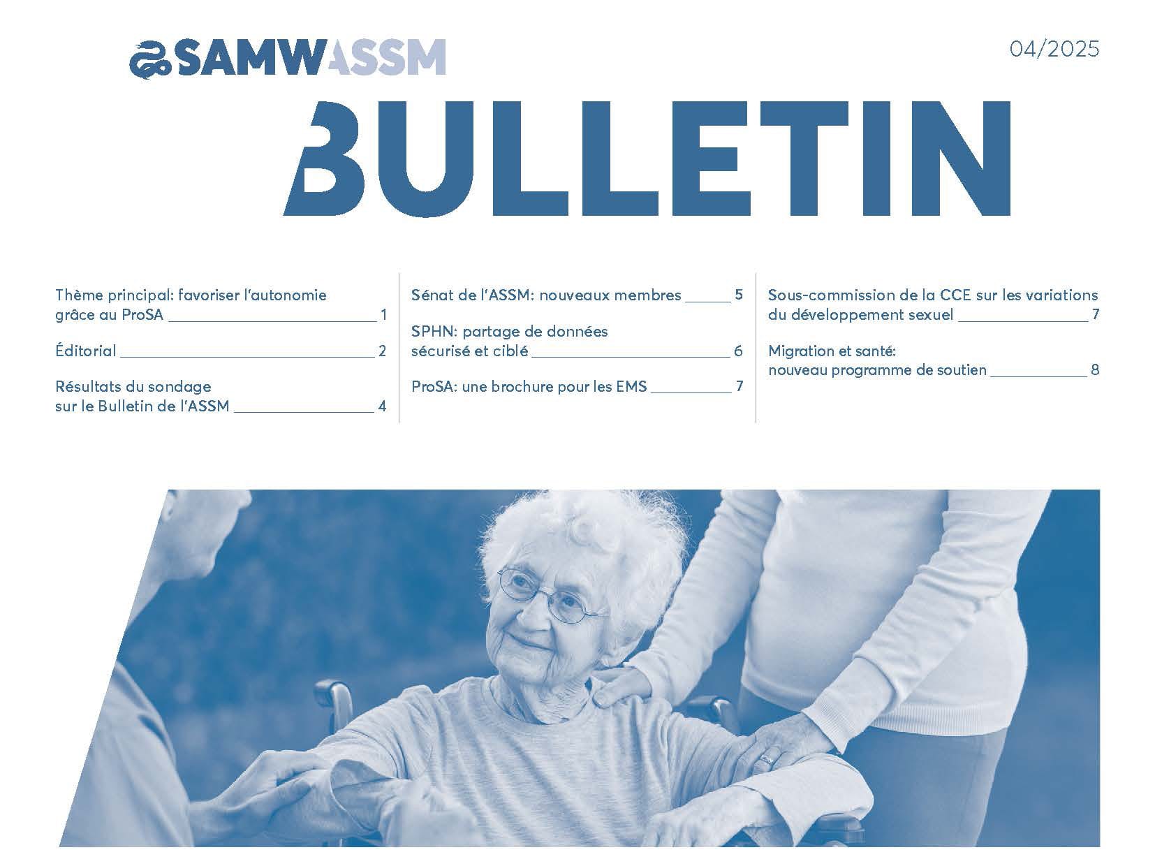 Que se passe-t-il lorsque nous perdons notre capacité de discernement à cause d’un accident ou d’une maladie? En préparant un projet de soins anticipé (ProSA), nous pouvons réfléchir et répondre à ce genre de questions à l’avance et ainsi faire en sorte que notre volonté soit respectée, même lorsque nous ne serons plus capables de décider nous-mêmes. Dans l’article principal du dernier Bulletin de l’ASSM, le Prof. Miodrag Filipovic explique pourquoi le ProSA va bien plus loin que des directives anticipées classiques.